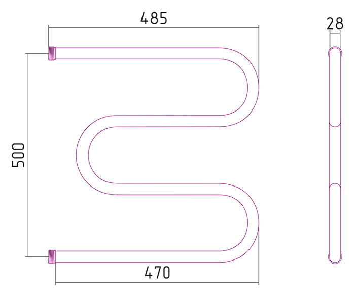 —Полотенцесушитель водяной Стилье М-образный 500*500 резьба-сгон 1"