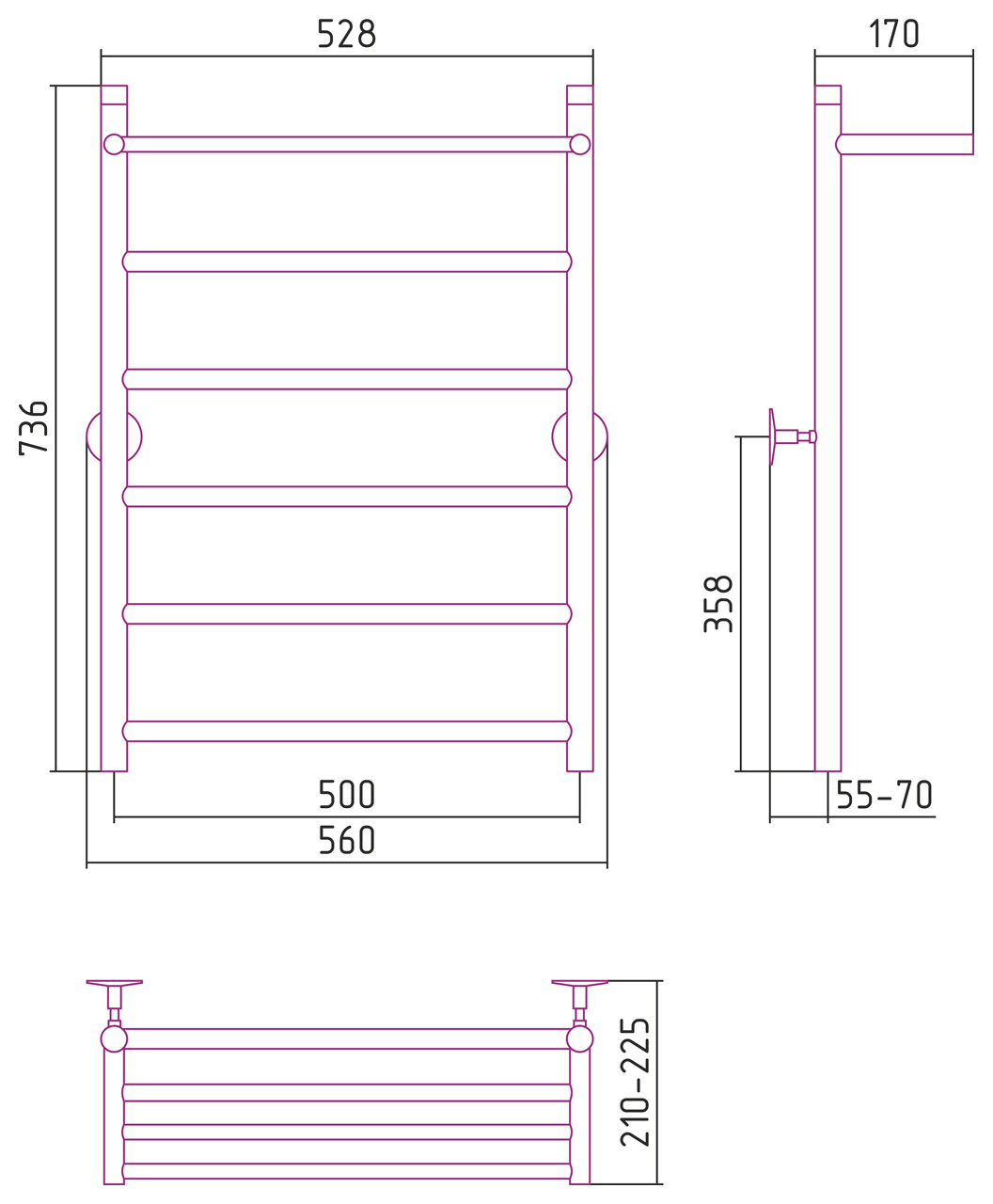 —Полотенцесушитель водяной Стилье УНИВЕРСАЛ-54 800х500 (полка+5) П 21