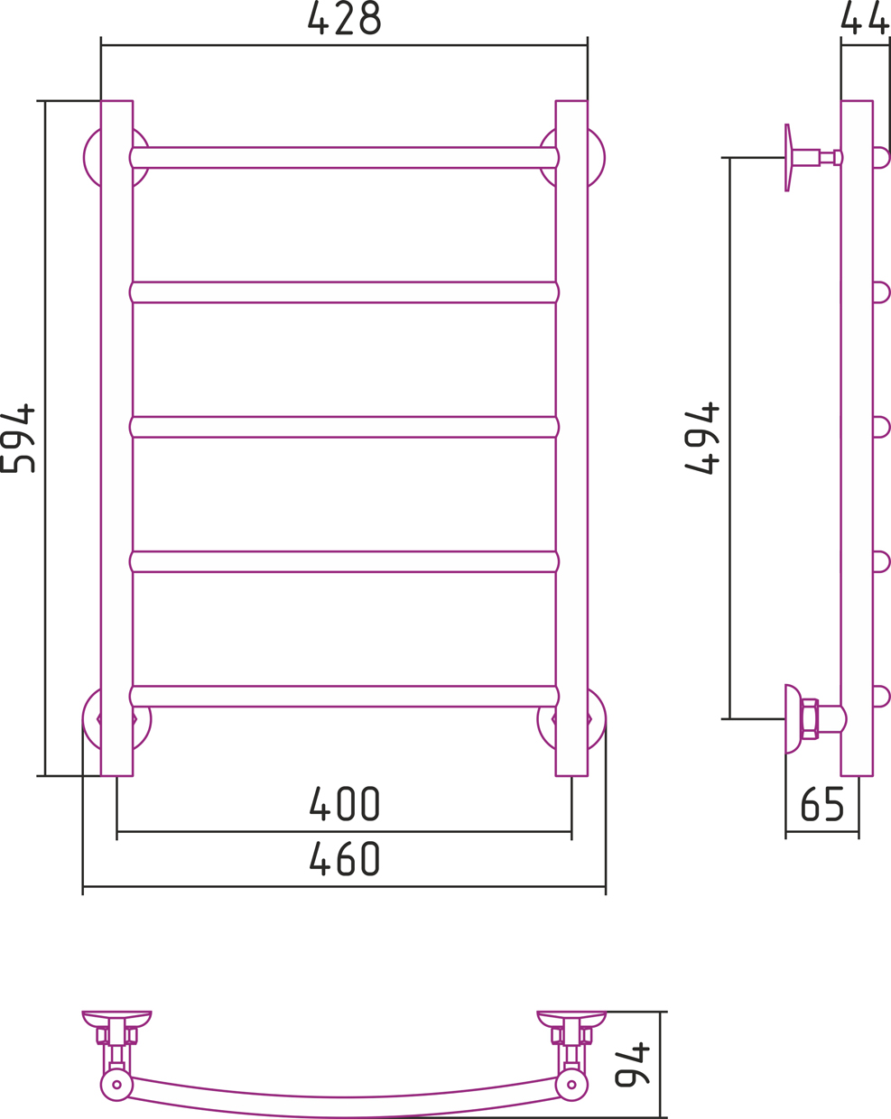 Полотенцесушитель водяной Стилье ВЕРСИЯ-Н2 00622-6040 600х400
