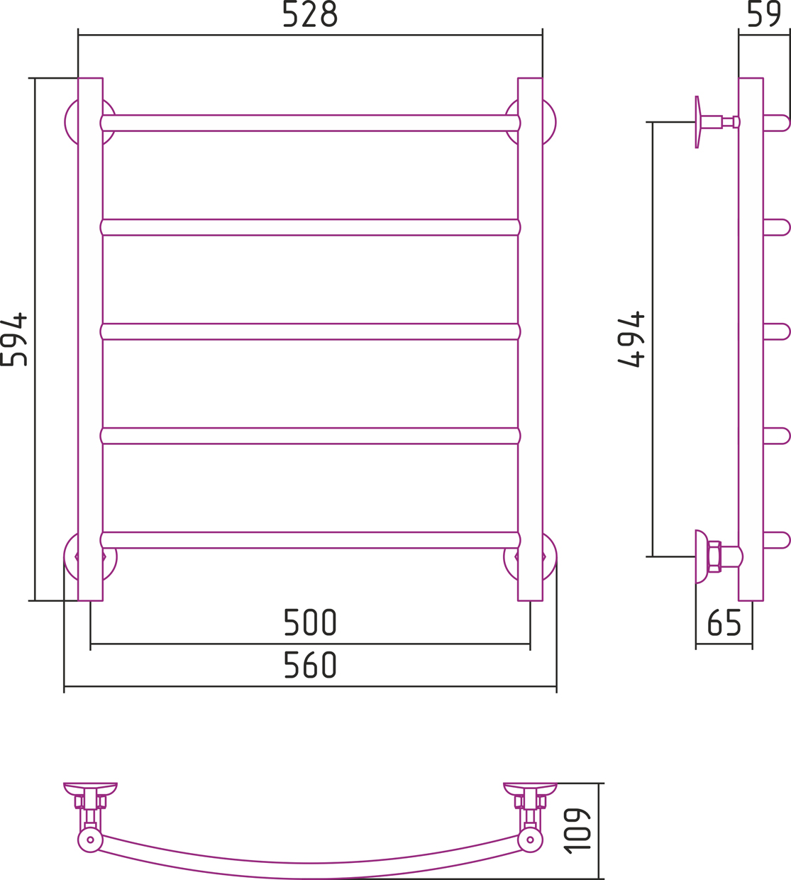 —Полотенцесушитель водяной Стилье ВЕРСИЯ-Н2 600*500 (5) Г 18