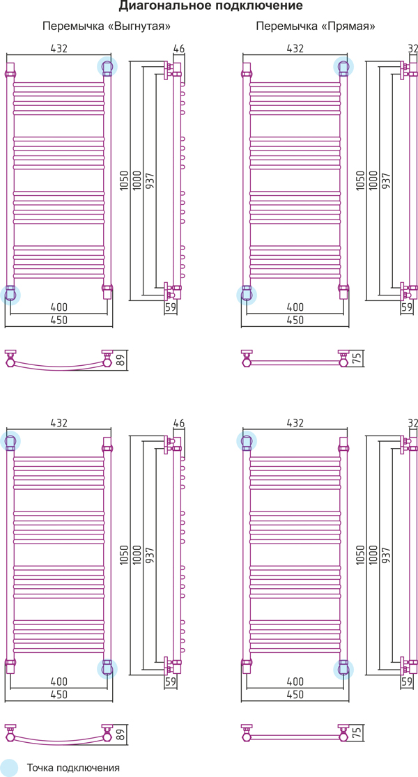 Диагональное подключение, см