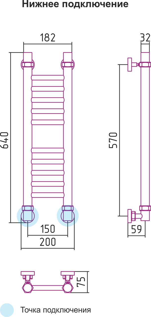 Горизонтальное подключение, см