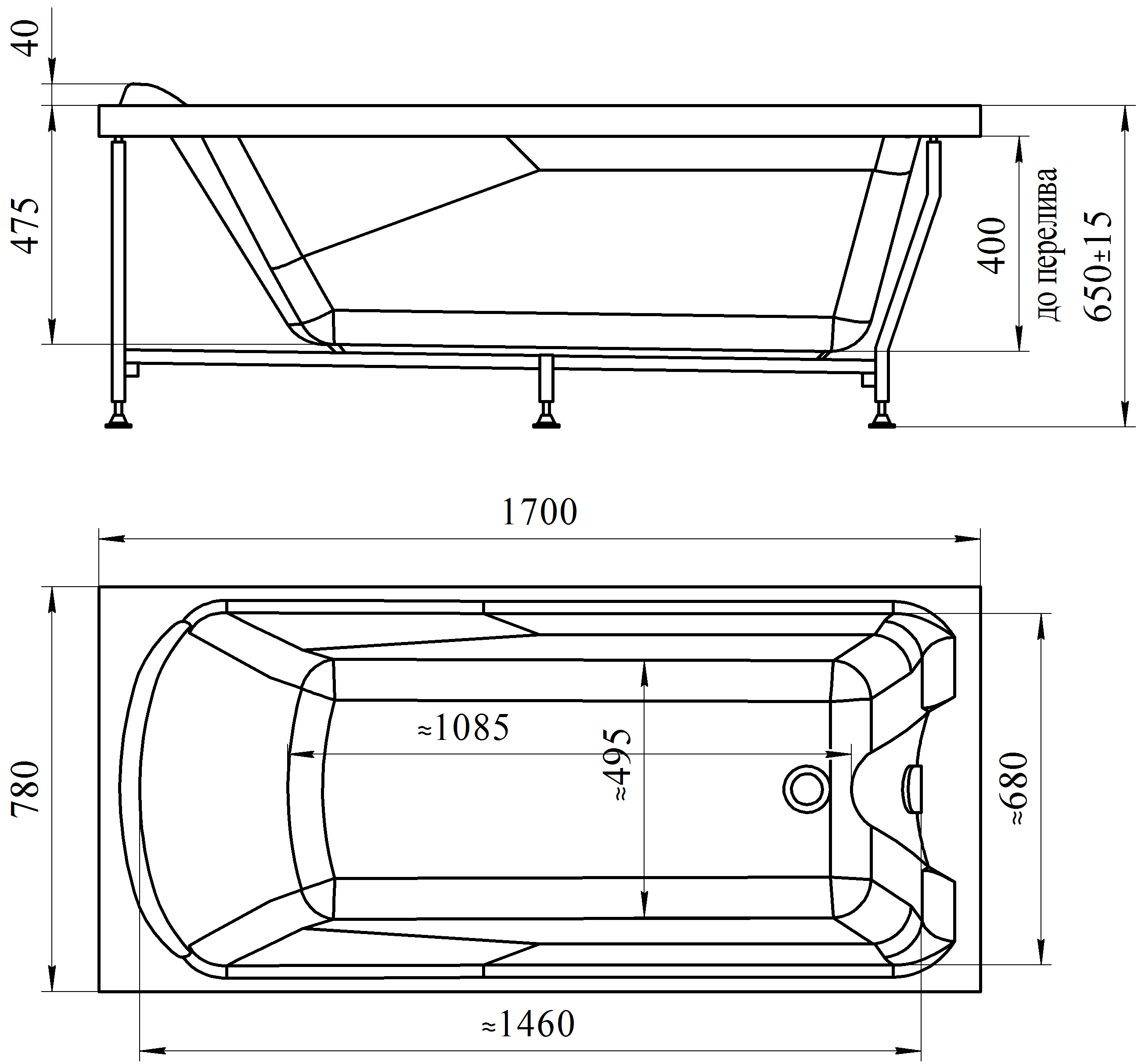 —Ванна акриловая прям. Radomir ЛАРЕДО 170*78 см. с каркасом