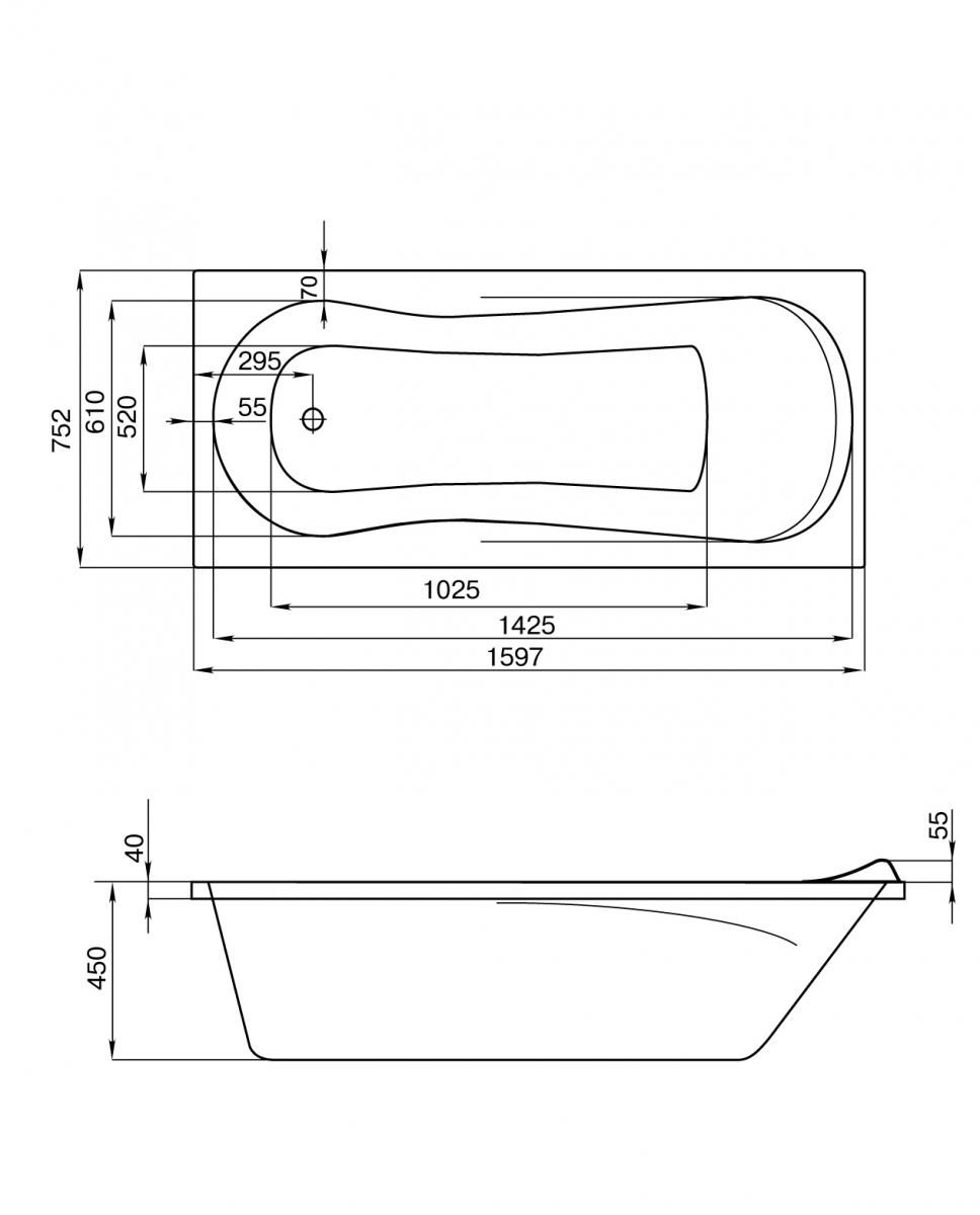 Ванна акриловая Santek КАЛЕДОНИЯ 1.WH30.2.388 160x75 см.