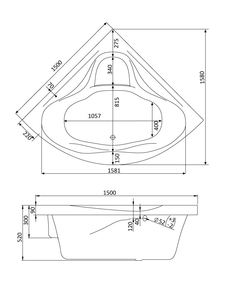 Ванна акриловая Santek САН-ПАУЛУ 1.WH30.2.399 150x150 см.
